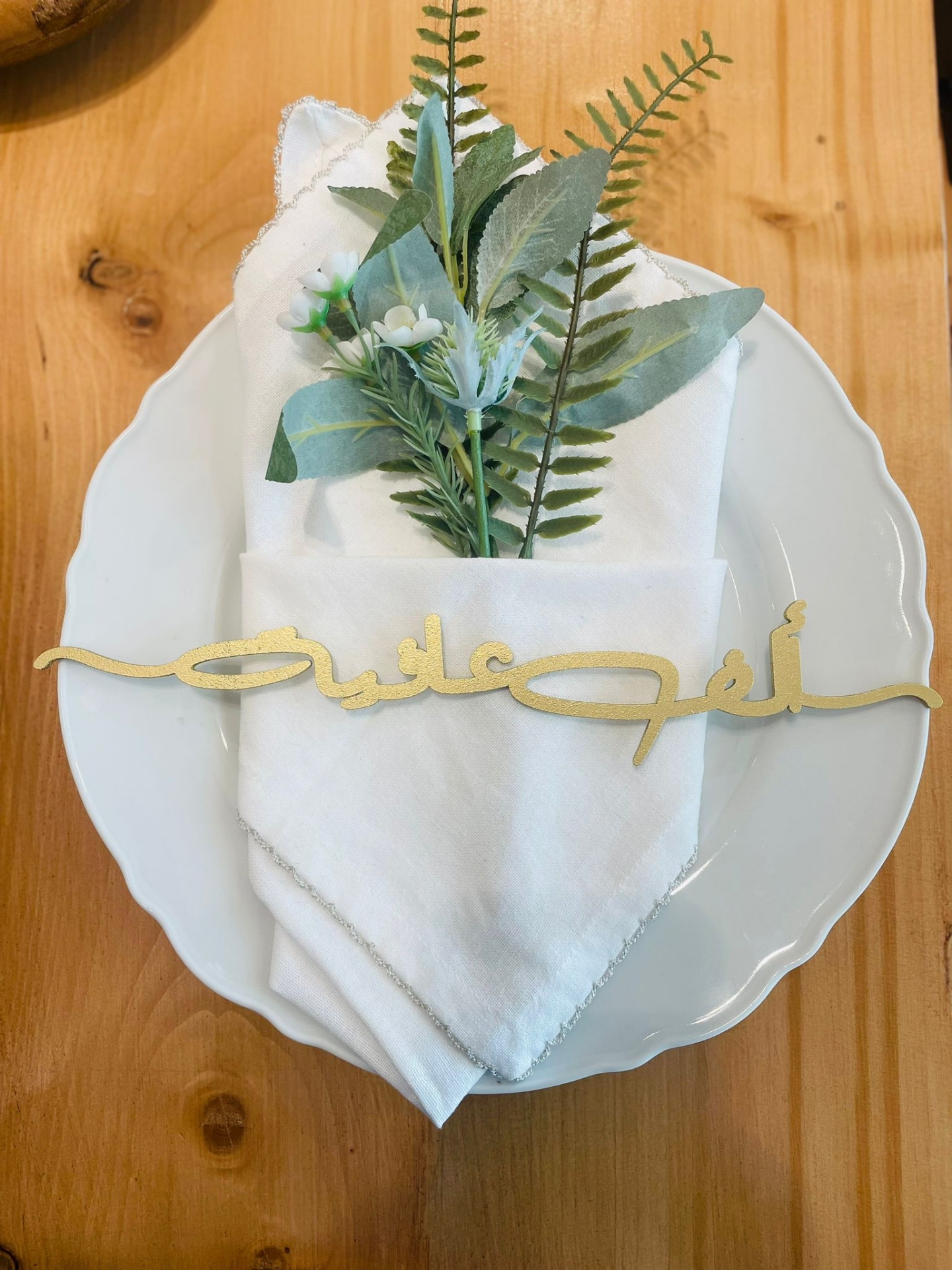 ألف عافية )ديكورخشبي للأطباق 1-طقم من 6 قطع-ذهبي )