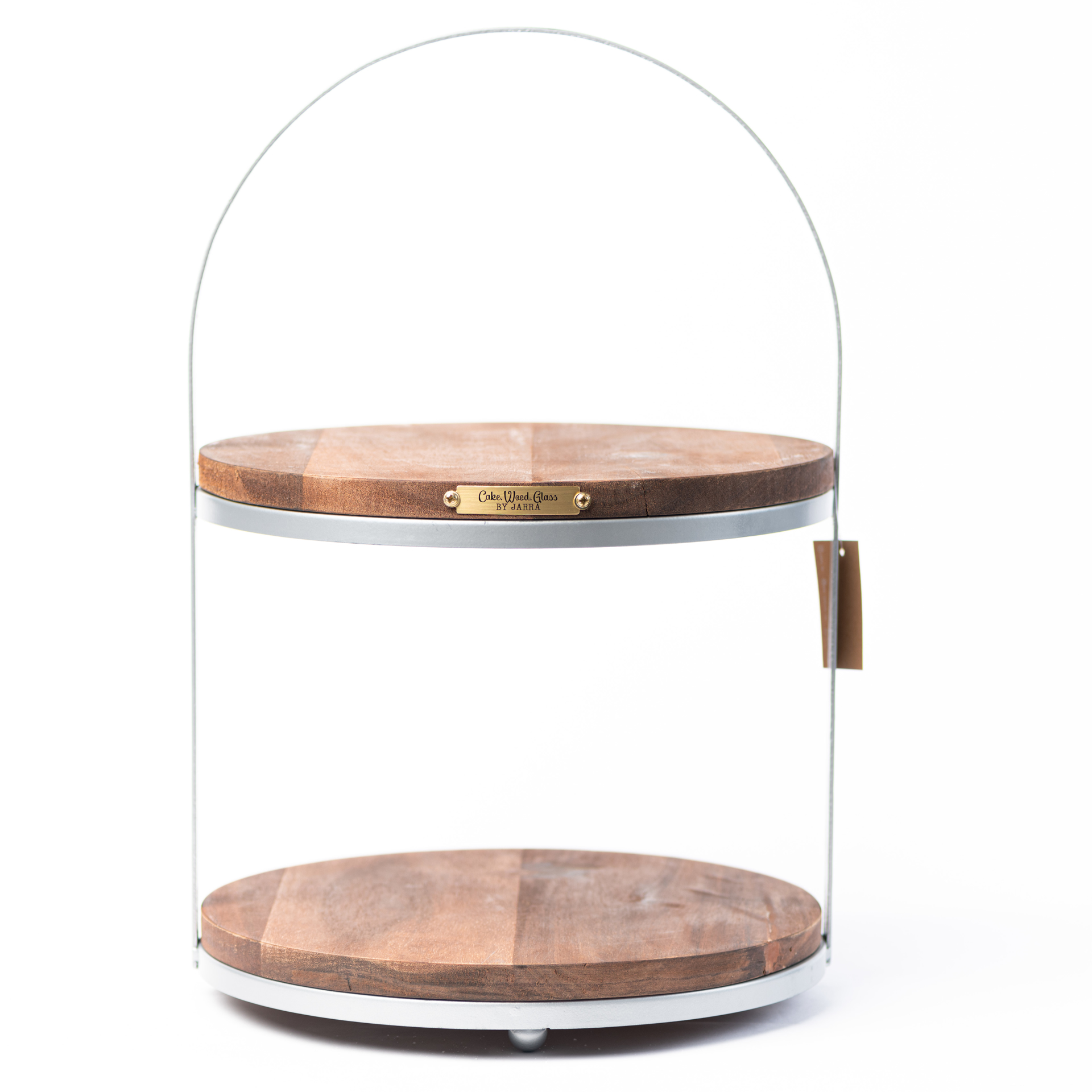 حامل كعك للتقديم بخشب الأكاسيا مع غطاء زجاجي