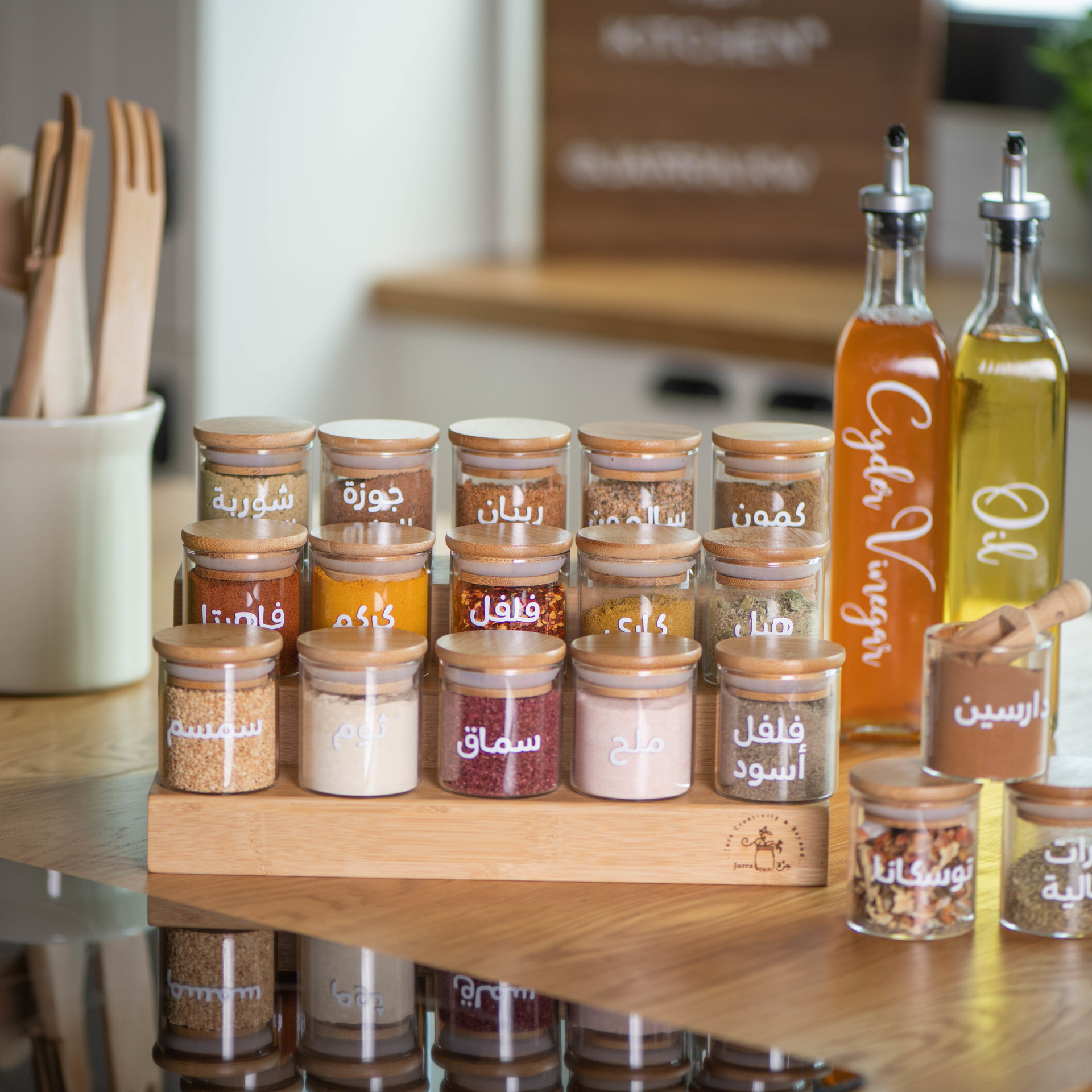حامل جرات خشبي من ٣ أدوار مع ١٥ جرة١٠٠ ملي - طقم خشب البامبو