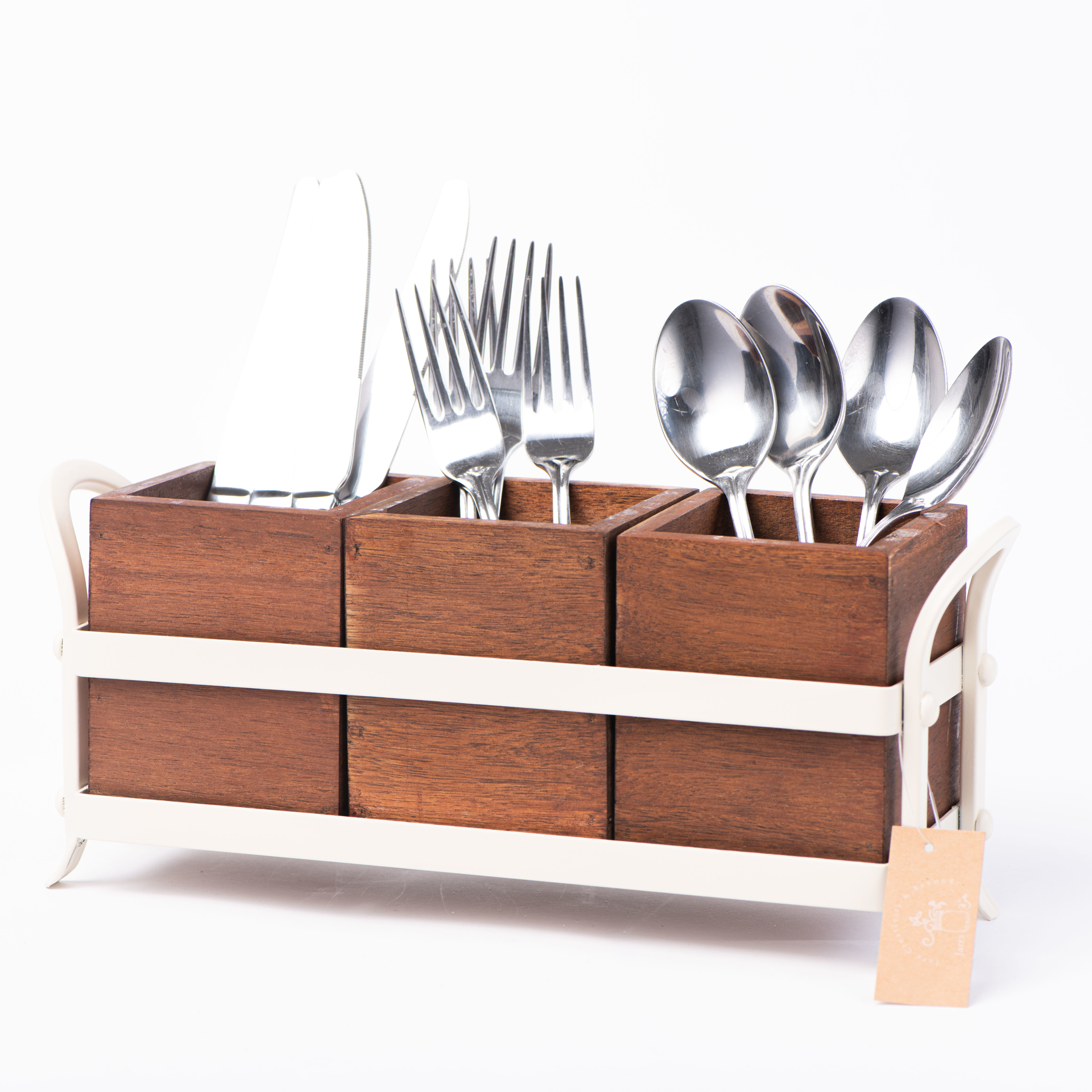حامل معدني كريمي مع خشب داكن