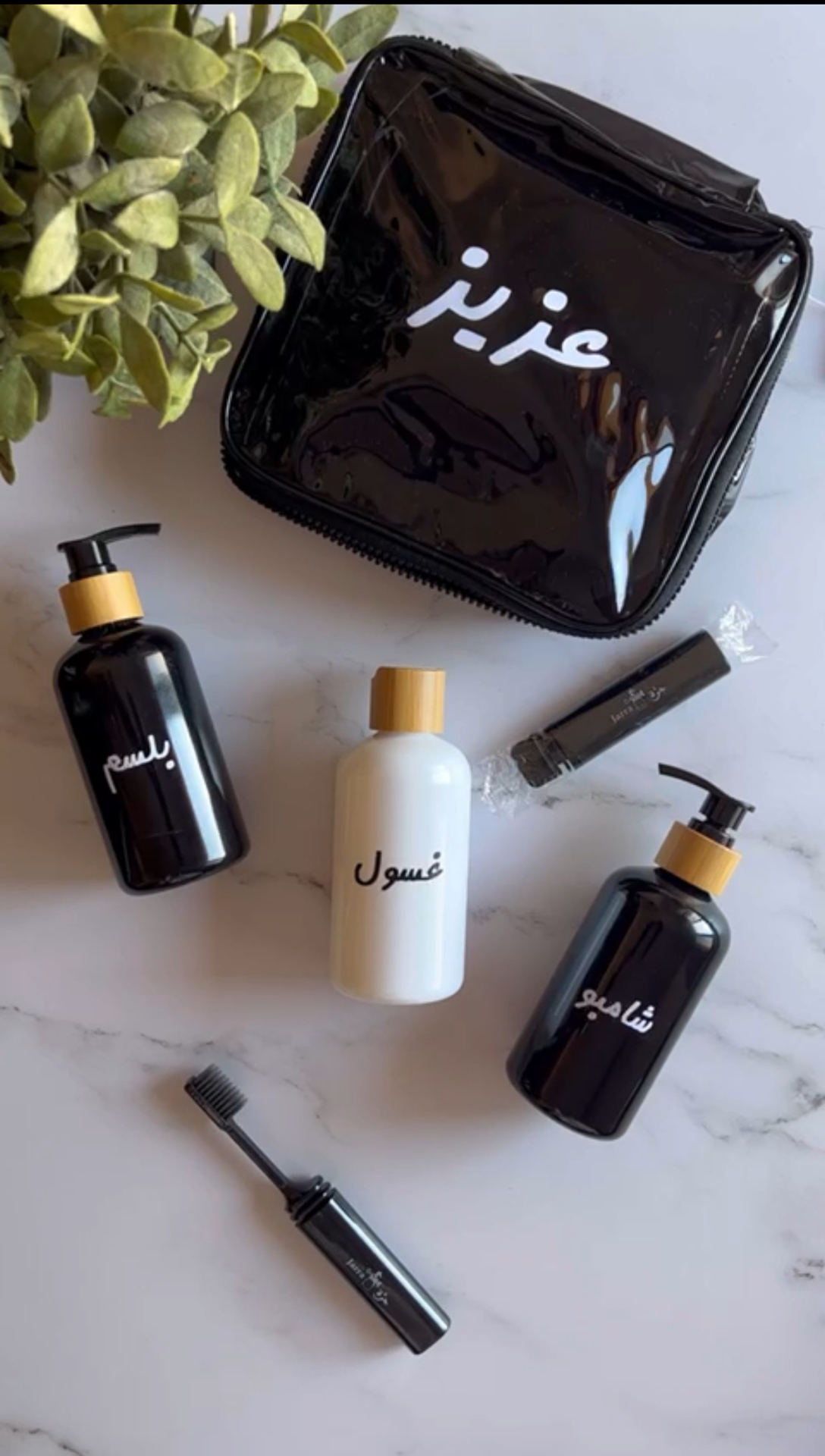1 حقيبة صغيرة سوداء سم (19 *19 ) المقاسات 3 قنينة صغيرة المقاسات: الطول = 13 سم، العرض = 6.5 سم