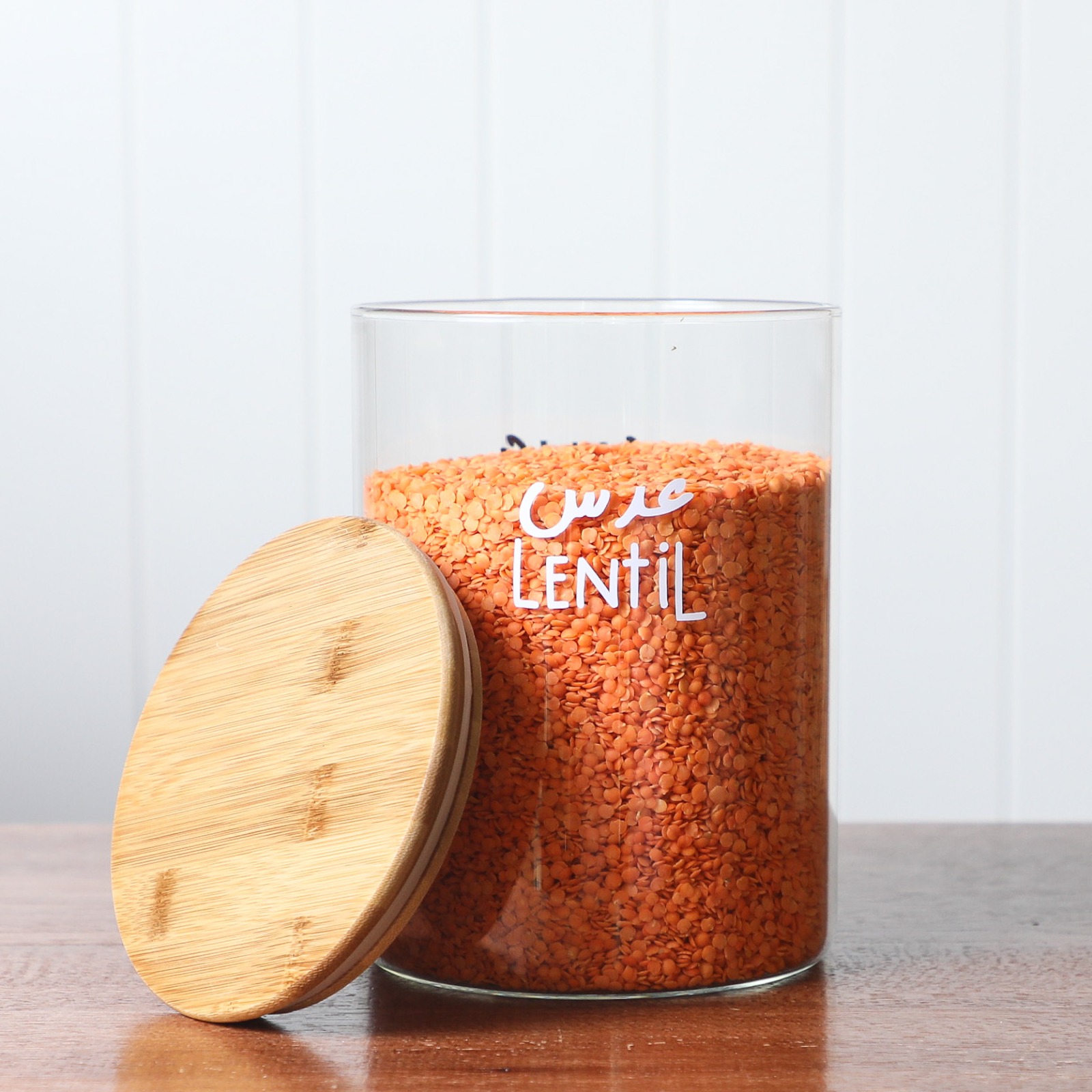 مسقيمة الشكل -جرة زجاجية محكمة الإغلاق بغطاء خشبي 3 لتر