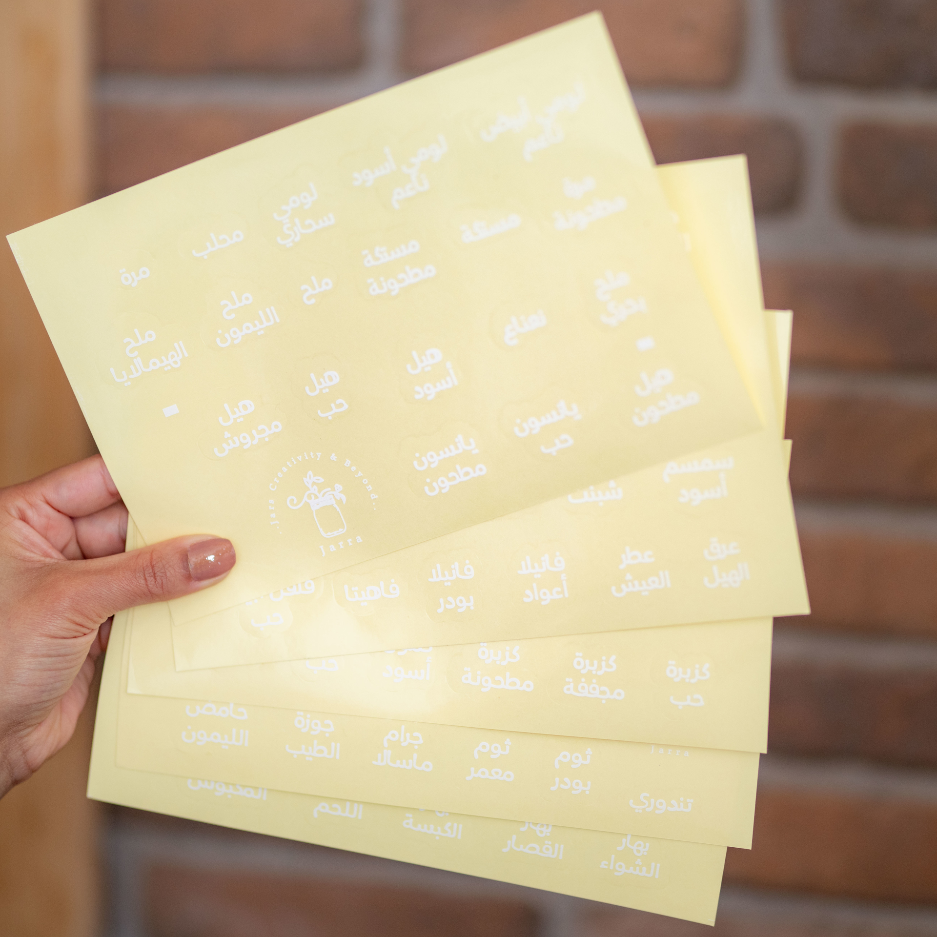 117 stickers of spices names - Arabic - White