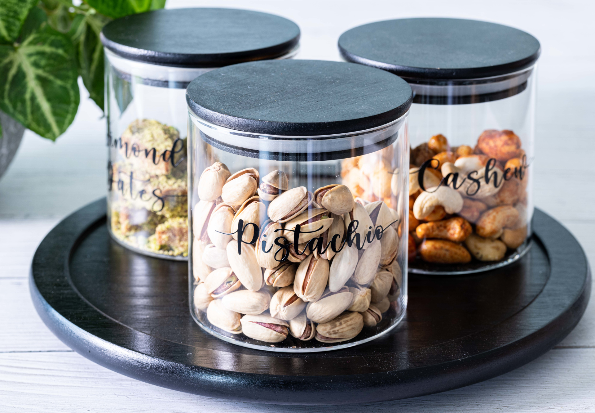 Nuts Set - Black Lid Jars With Rotary Tray