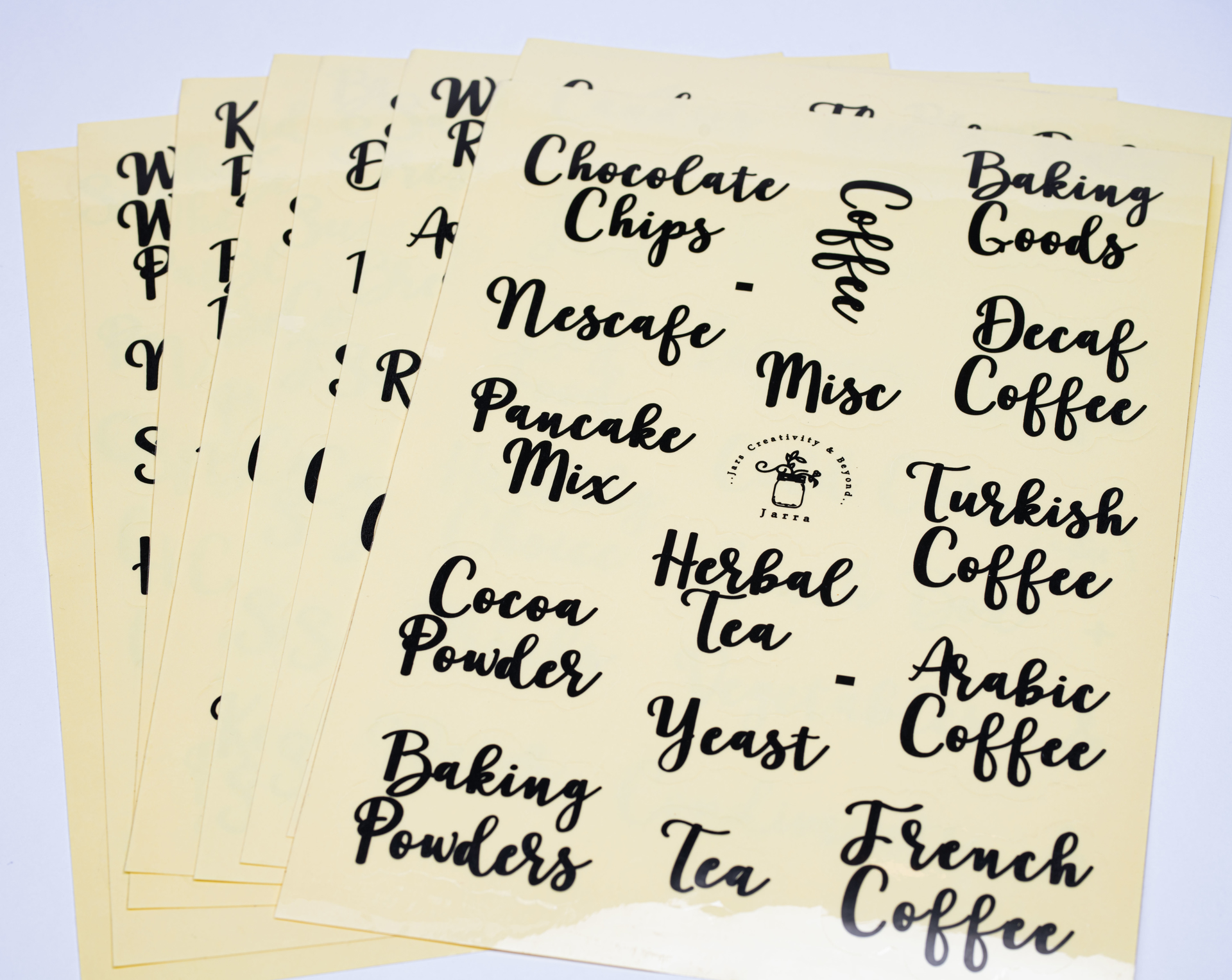117 stickers of spices names - Arabic - White