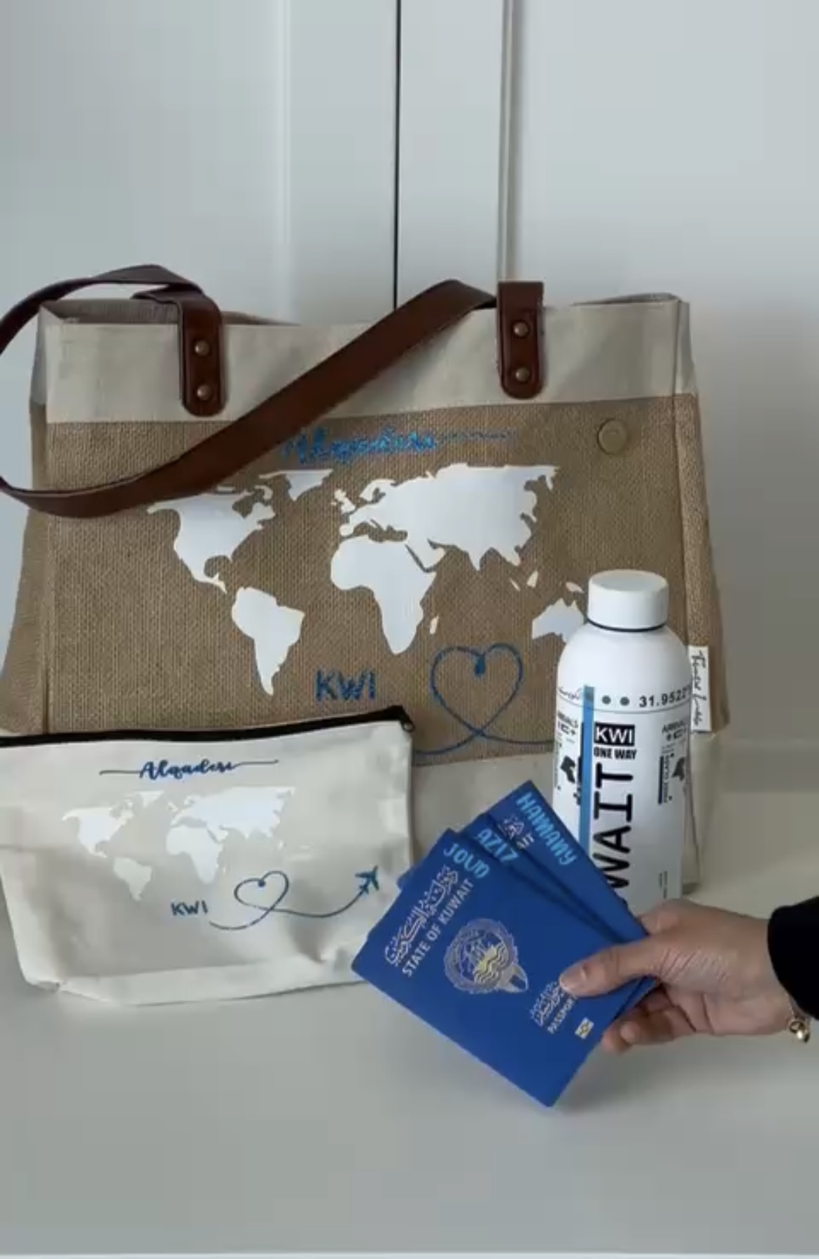 Jute Bag :Dimensions: Length = 34 cm, Width = 41 cm, Small Case: Length = 17.5cm, Width = 25.5 cm, 4 PASSPORT LABELS